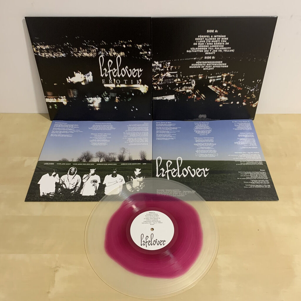 Reprint 700x transparent purple in milky clear 12" (140g) in a microtene innerbag, printed innersleeve full-color on 220g, jacket full-color on 350g, all assembled in a PVC overbag.