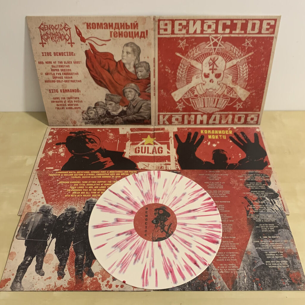 200x bone with red splatters 12" (140g) in a microtene innerbag, printed innersleeve, full-color on 220g carton, poster 60x60mm, full-color printed on 150g art-paper, download card, gatefold full-color printed on 350g carton, all assembled in a plastic overbag.