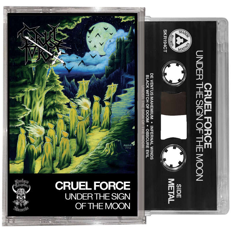 Truest of the true, Germany's CRUEL FORCE burst onto the scene in 2008 with the Into the Crypts... demo. While many have tried to emulate the ancient German (black)thrash sound, CRUEL FORCE brimmed with an authenticity that could not be denied, as well as songwriting that added to that noble tradition rather than lazily picking at its corpse. Their two successive albums, 2010's The Rise of Satanic Might and 2011's Under the Sign of the Moon, made CRUEL FORCE a certifiably CULT name in the international metal underground. Sadly, the band fell into a hiatus following that second album, but returned reinvigorated with the comeback 7" EP Across the Styx in 2022 and, a year later, the glorious full-length Dawn of the Axe at the hands of new label home SHADOW KINGDOM.
