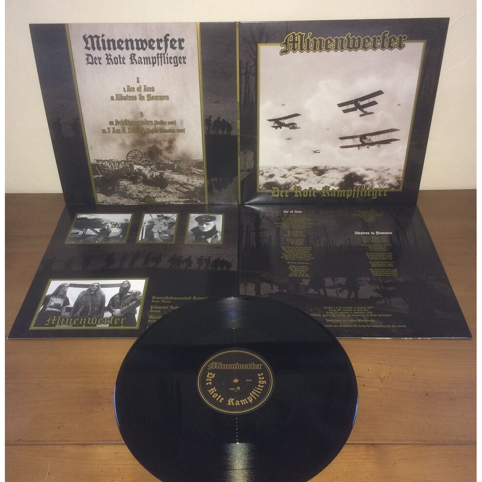 Of those many short-length releases, Der Rote Kampfflieger is the oldest and perhaps most curious. Here, MINENWERFER offered the new track “Ace of Aces,” the reworked “Albatros in Flammen,” and two very surprising covers: deep martial industrial artist Striider's “Schüzengraben” and legendary shredder Yngwie J. Malmsteen's early scorcher “I am a Viking.” MINENWERFER for sure have their own identifiable sound, but they're not afraid to push it in strange directions from time to time.